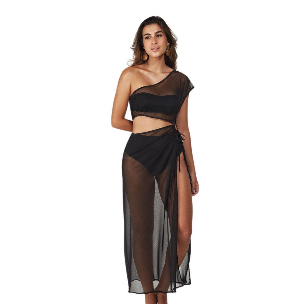 Saída de Praia Tule Black, Um ombro e recorte na lateral.